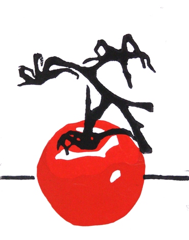 Tomaat 2005 linoleumsnede 14,5 x 11,5 cm