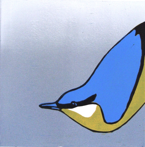 Boomklever 2006 linoleumsnede 17 x 17 cm