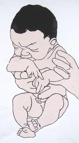 baby 2 2007 linoleumsnede 31 x 40 cm