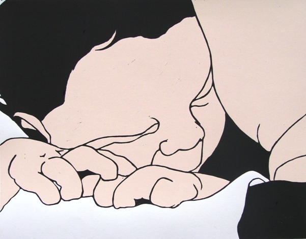 baby 3 2007 linoleumsnede 56 x 30 cm