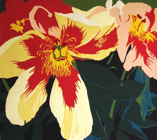 Pioen 2005 linoleumsnede 45 x 47 cm