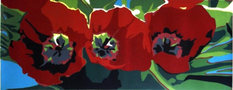 Drie tulpen 2005 linoleumsnede 22 x 56 cm