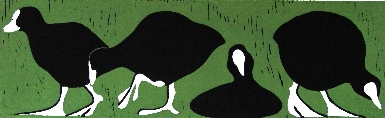 Meerkoeten linoleumsnede 14,5 x 39,5 cm